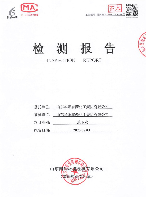 山東華陽農(nóng)藥化工集團有限公司地下水檢測報告